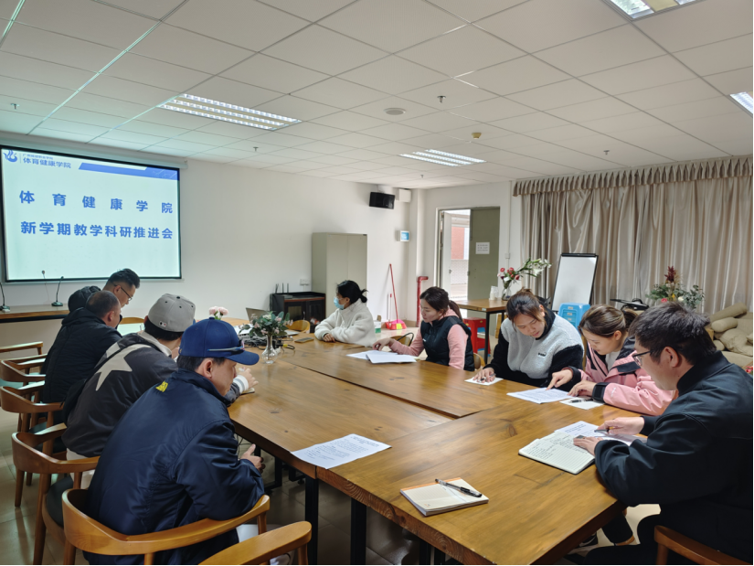 3月7日下午,学院在图书馆406会议室召开关于落实新学期学校教学、科研工作任务的推进会,学院教研室正副主任、国家级运动健将等10余人参加了会议,会议由学院副院长郝世煜主持。