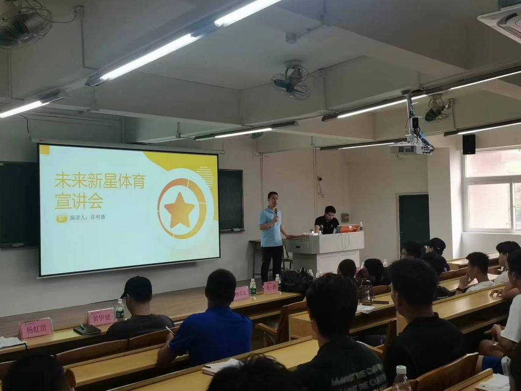 未来新星体育运动有限公司总部位于广州,自2020年成立以来服务学员超5000人,覆盖广州各地区球馆和教学点。在宣讲会上企业代表许明德分别围绕企业价值观、团队构成、经营业务、未来发展及人才晋升培养方案等方面向同学们开展宣讲,详细地回答了同学们关心的各种问题,得到了同学们的热烈响应。